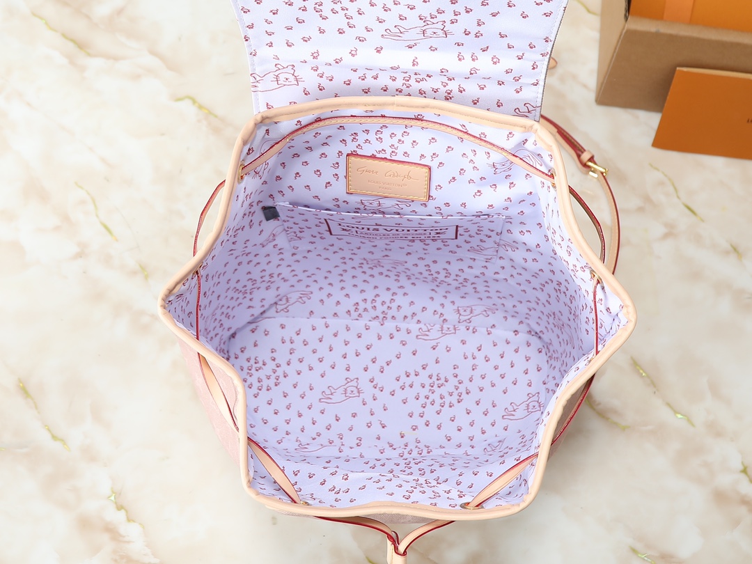 Version M15136 M15135 M15134 N00120 M12587 M11197 M11198 M11199 This Montsouris medium backpack is from the LV Travels With collection, featuring the whimsical Meowgram pattern designed by fashion icon and artist Grace Coddington, showcasing her love for cats. The canvas body includes a detachable cat-shaped key pouch, ample space for everyday essentials, and a short wallet is included. Dimensions: x x (cm) (Length x Height x Width)