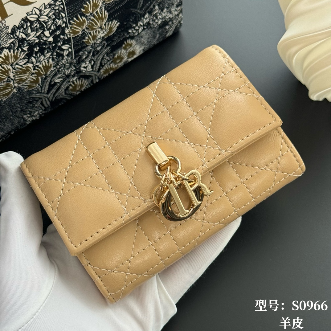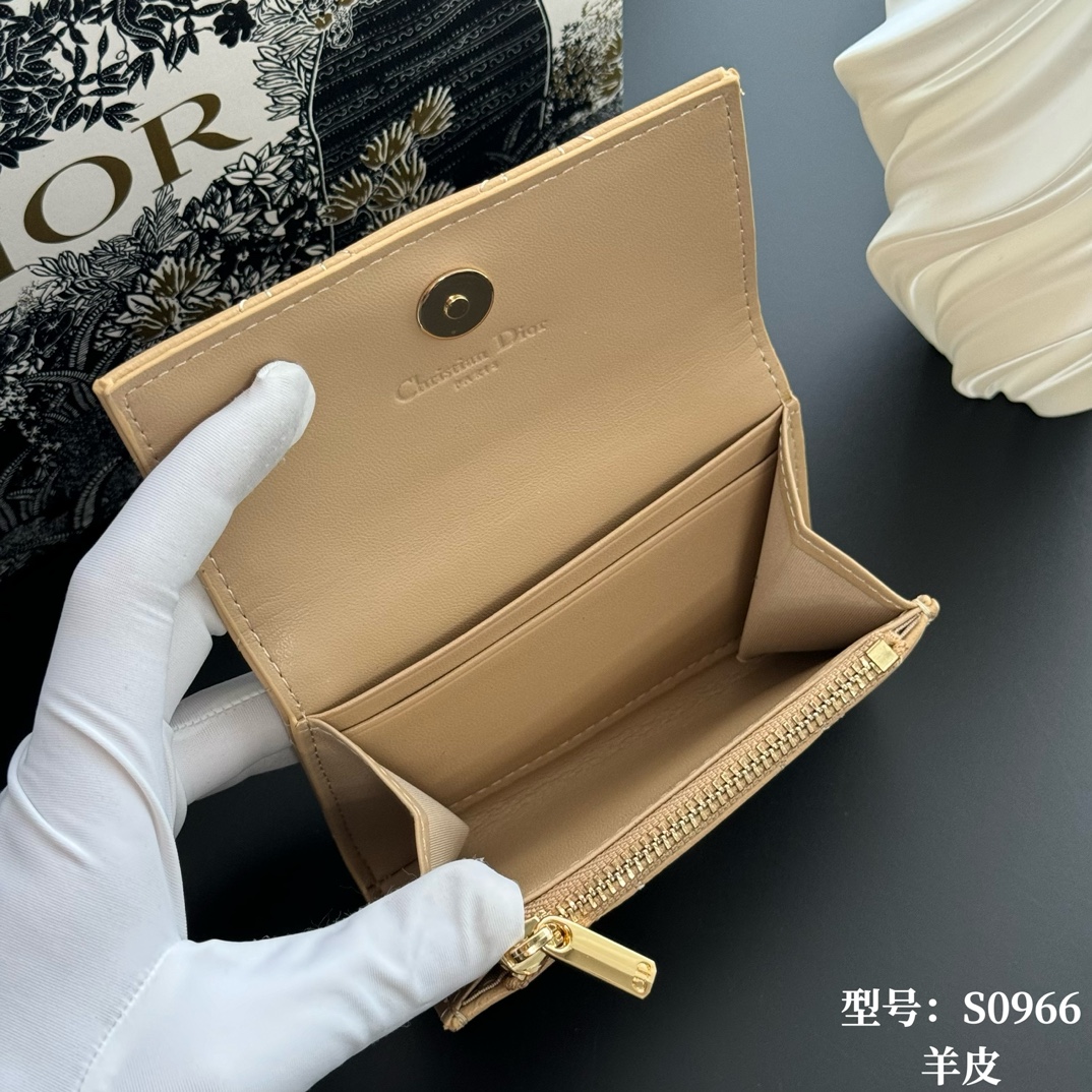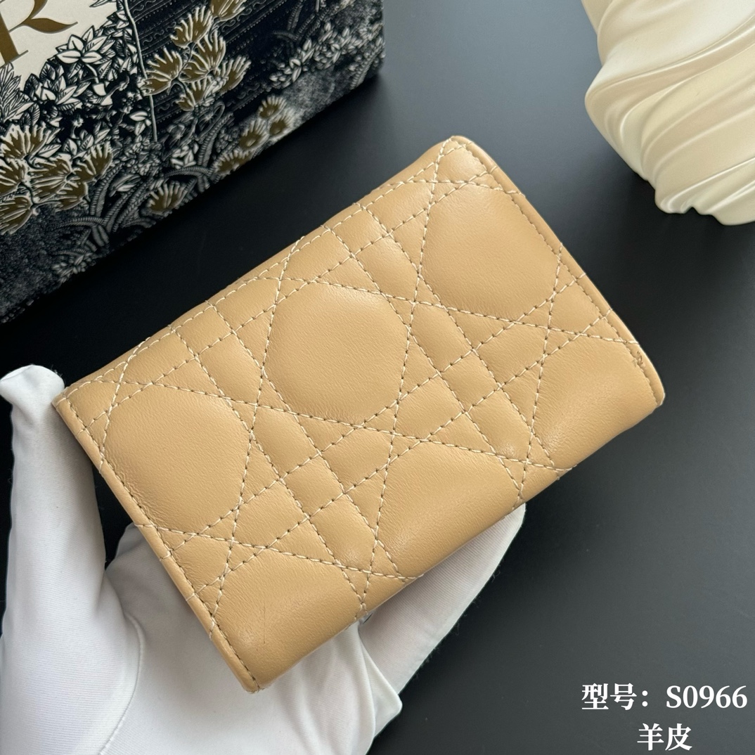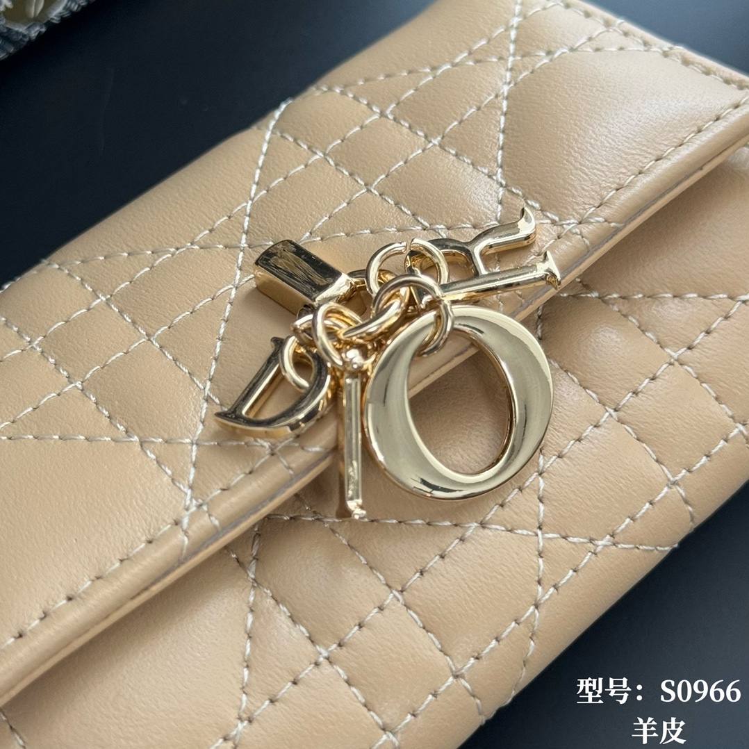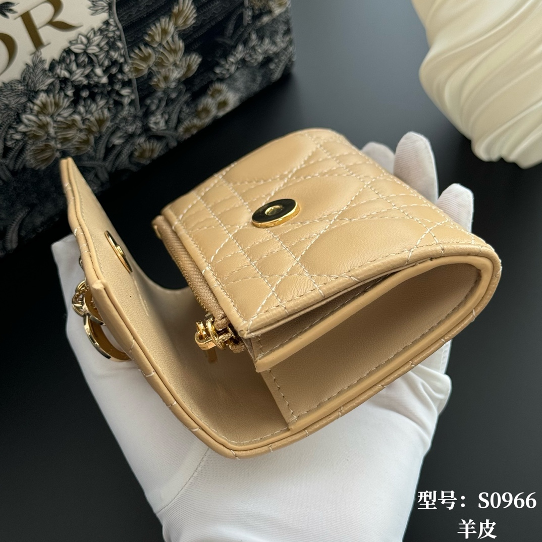 Top Quality Yellow Apricot Available at Authentic My Dior Boutiques Full Leather Inside and Out Comes with Picture Box, Exclusive Includes Mini Sachet This My Dior Glycine wallet is exquisite, practical, and unique. Crafted from rouge lambskin leather with a cannage pattern, it features a D.I.O.R. charm on the front for added style. Elegant and sophisticated, it can hold various everyday essentials, suitable for all occasions, and can be paired with other My Dior items. Front D.I.O.R. charm, 2 card slots 1 zippered compartment 1 spacious interior compartment. Made in Italy Item Number: S0966. Dimensions: x 7.5 x 2.5 cm