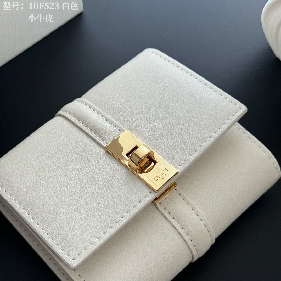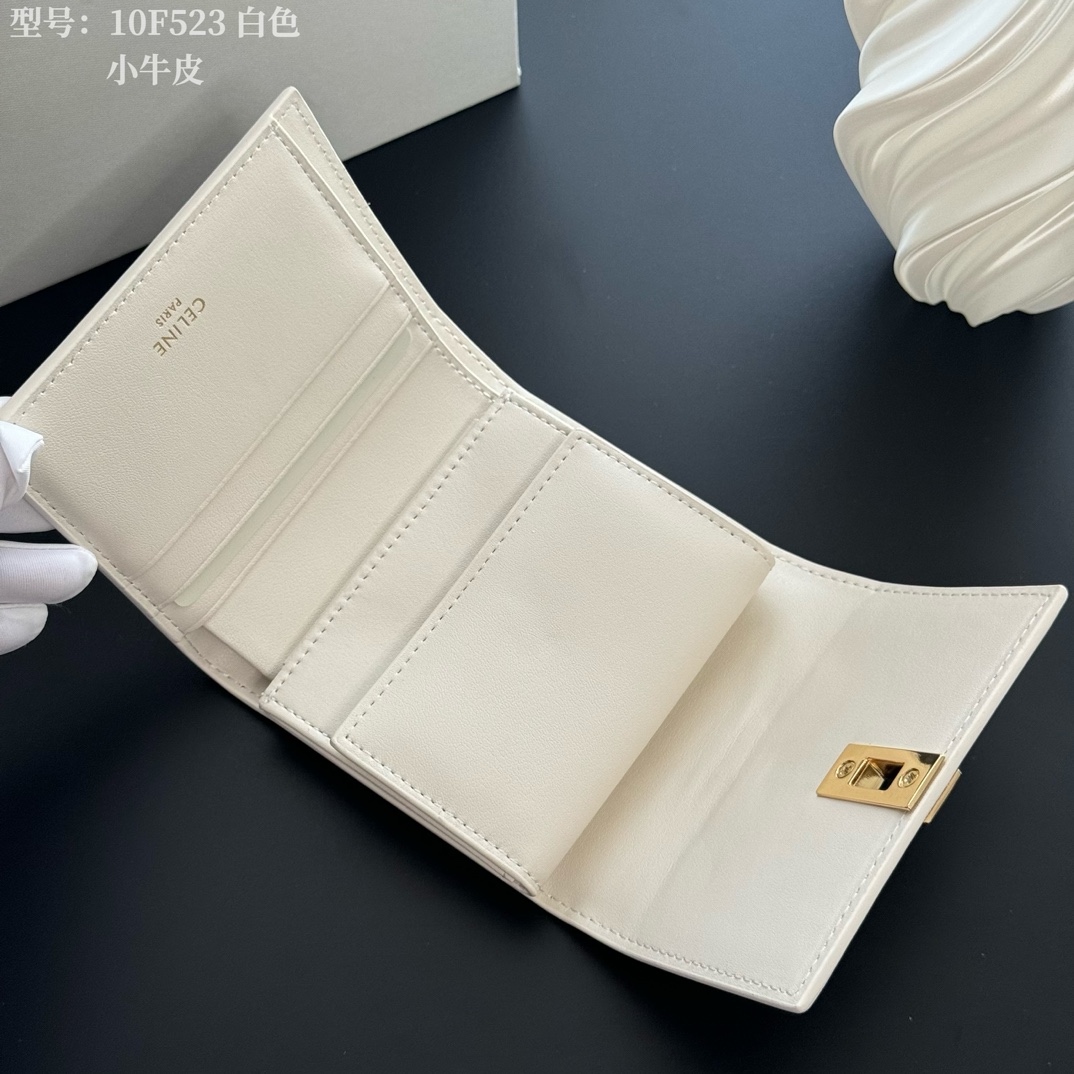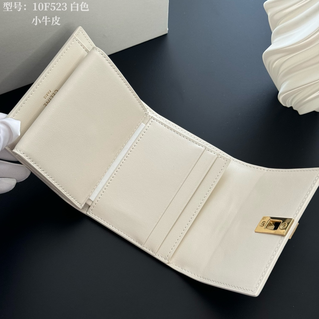 No color difference from the actual product ⬅️ Small Glossy Cowhide Leather Tri-Fold Wallet
