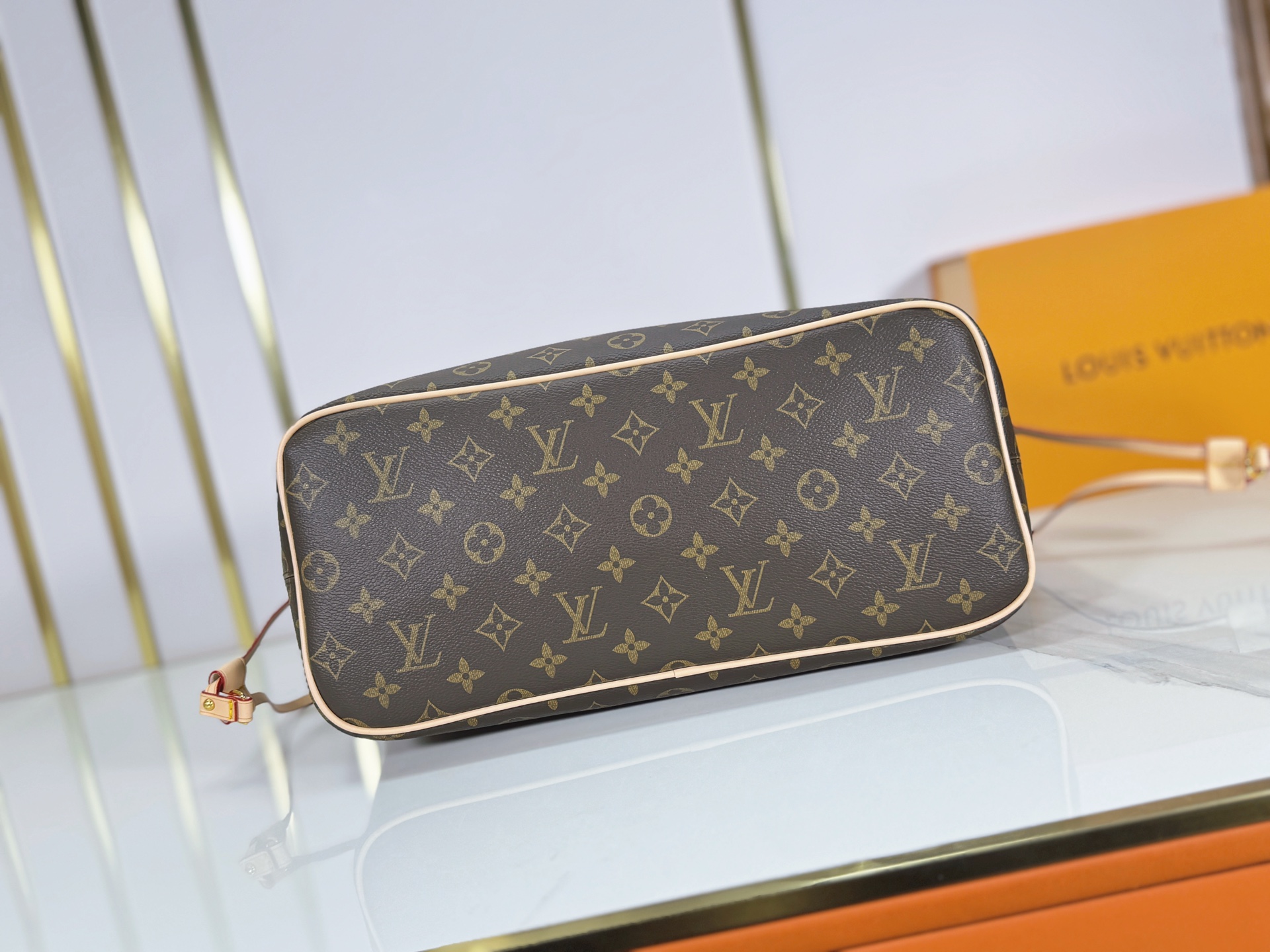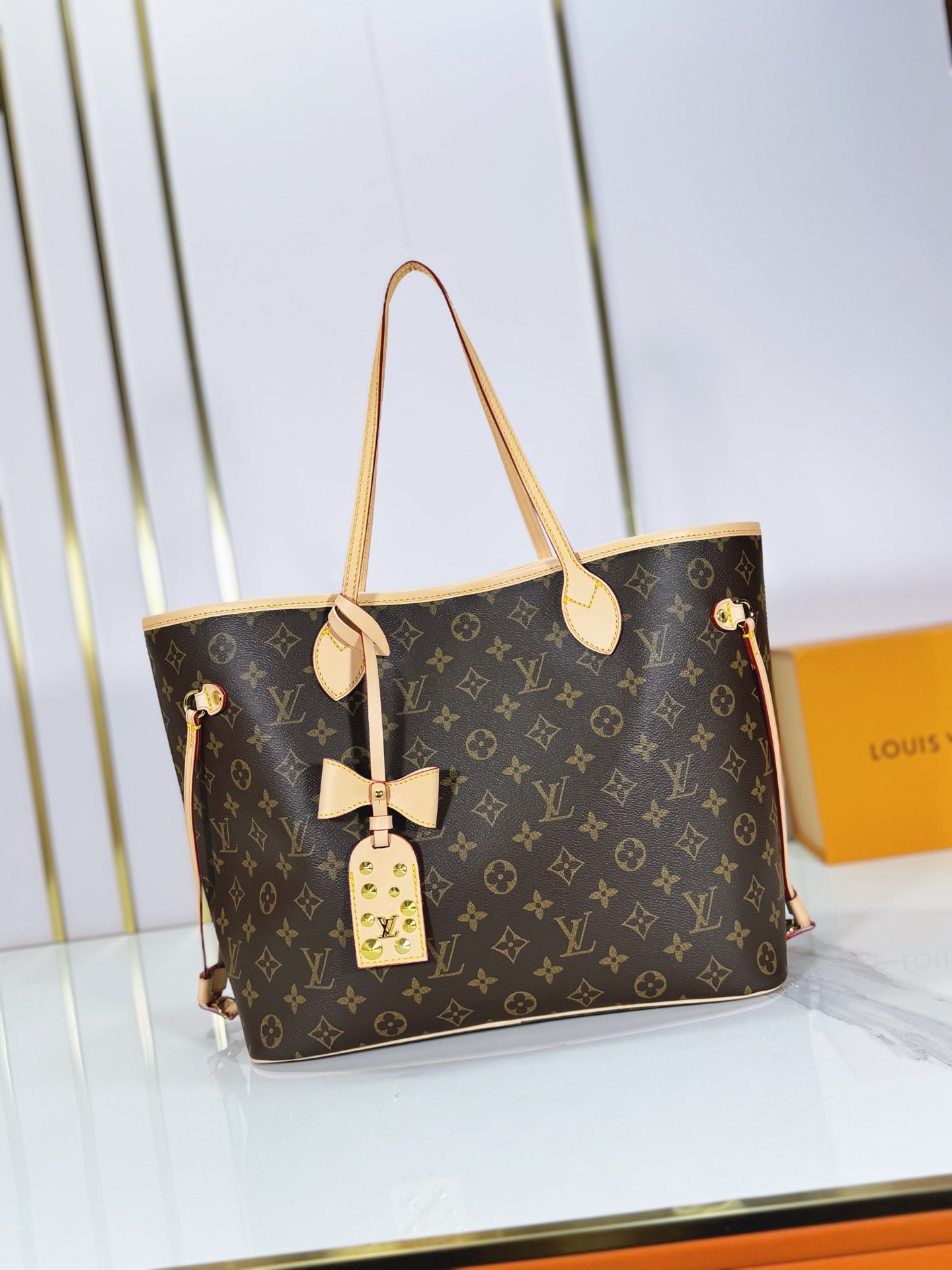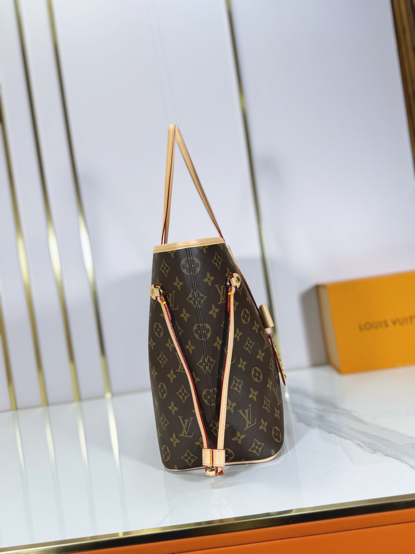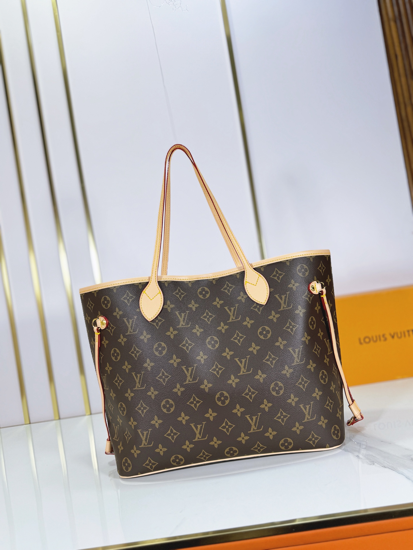 M40995 M27787 M45685 This Neverfull MM medium handbag reinterprets the classic Monogram Empreinte leather with a tonal aesthetic. The Neverfull is a spacious bag with side laces, allowing for a sleek, seductive look or a relaxed, casual one. It features a removable pouch inside, secured with a leather cord. Dimensions: – – cm