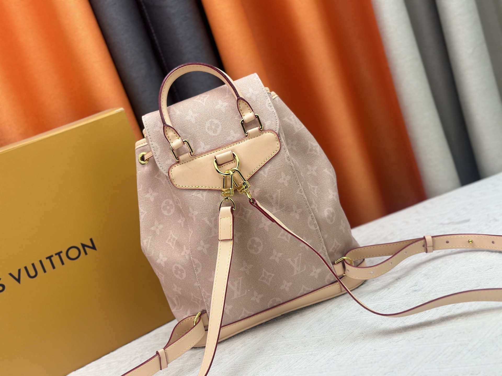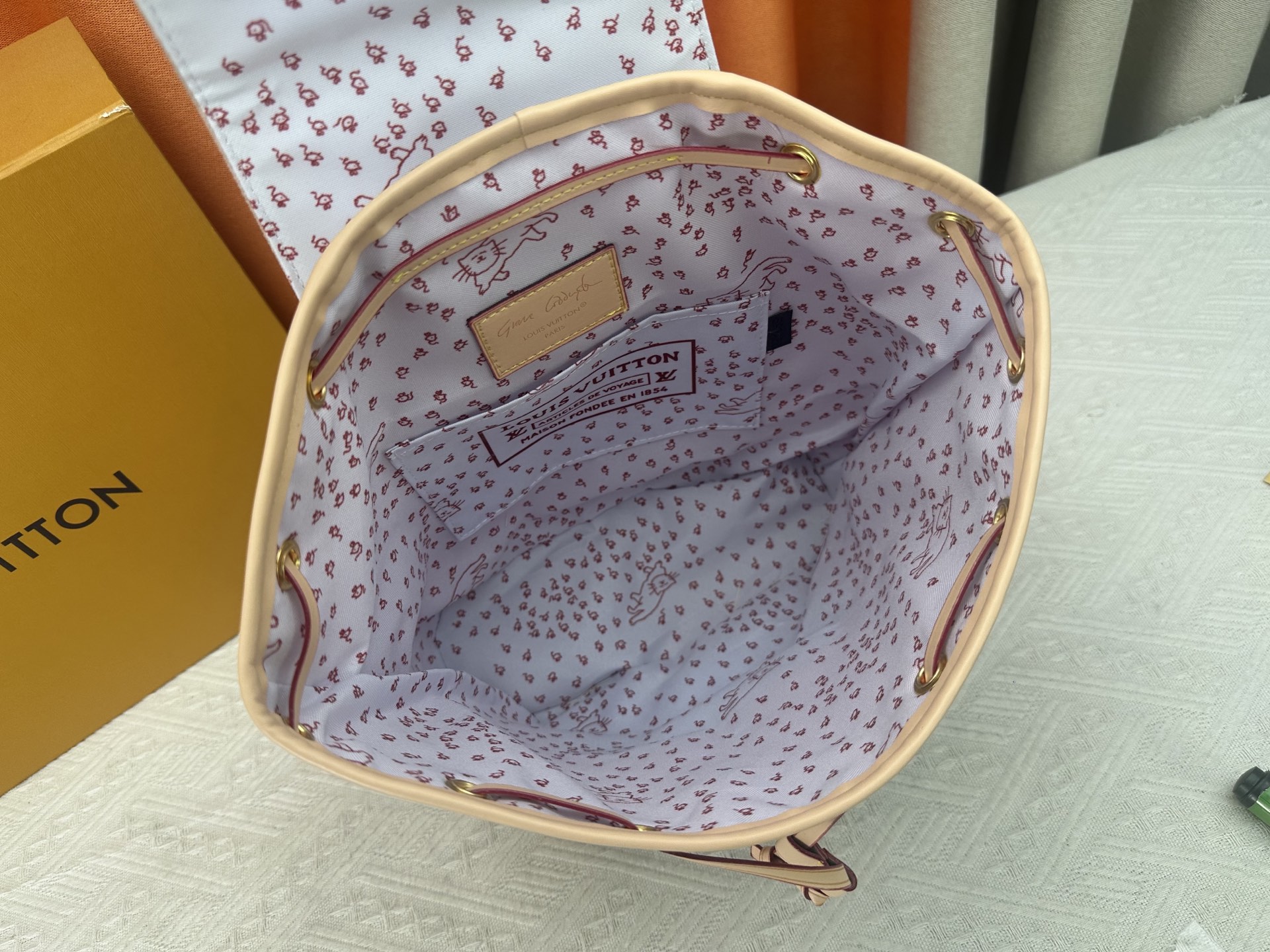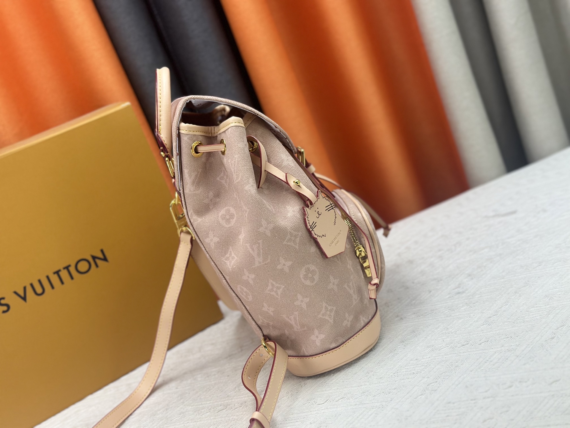 M15135 This Montsouris small backpack is from the LV Travels With collection, featuring the whimsical Meowgram pattern designed by fashion icon and artist Grace Coddington, showcasing her love for cats. The canvas body includes a detachable cat-shaped key pouch, ample space for everyday essentials, and a short wallet is also included. Dimensions: x x cm (H x W x Length)
