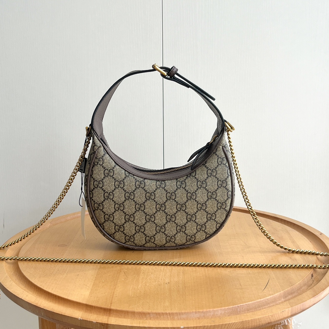Model: 699514 Size: 21x11x5cm New Marmont Mini Crescent Moon Handbag Features a classic chain strap; can be carried by hand or crossbody. Uses classic split leather with a bronze chain. Durable and long-lasting. Interior includes a cardholder compartment and key ring. ✔️ Available in 6 colors: Milk Tea, Black, White, Red, Avocado Green, Brown