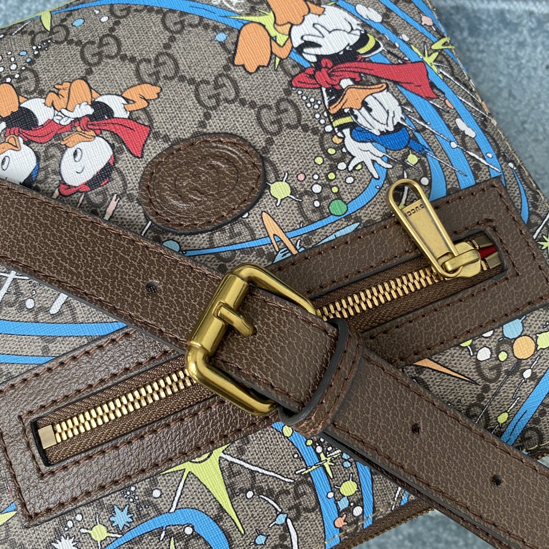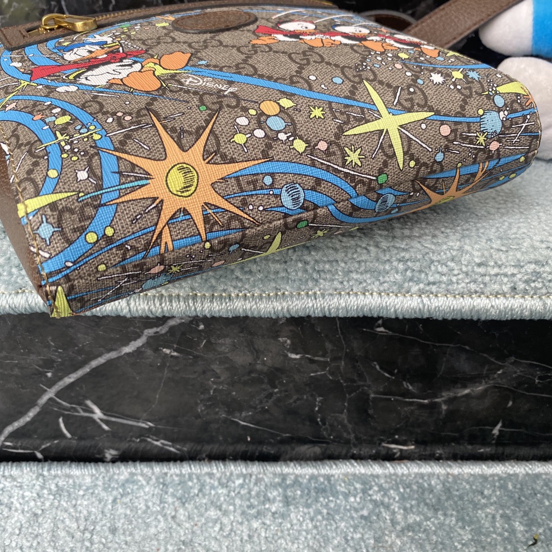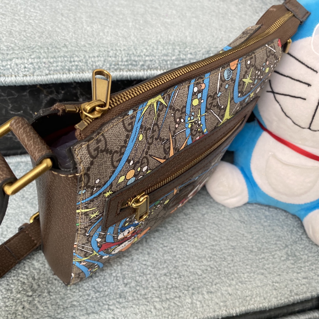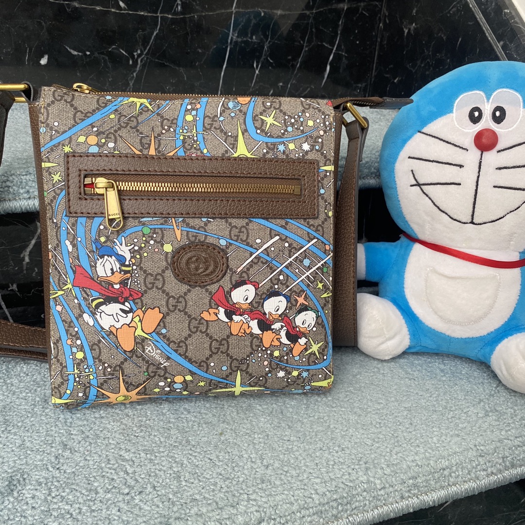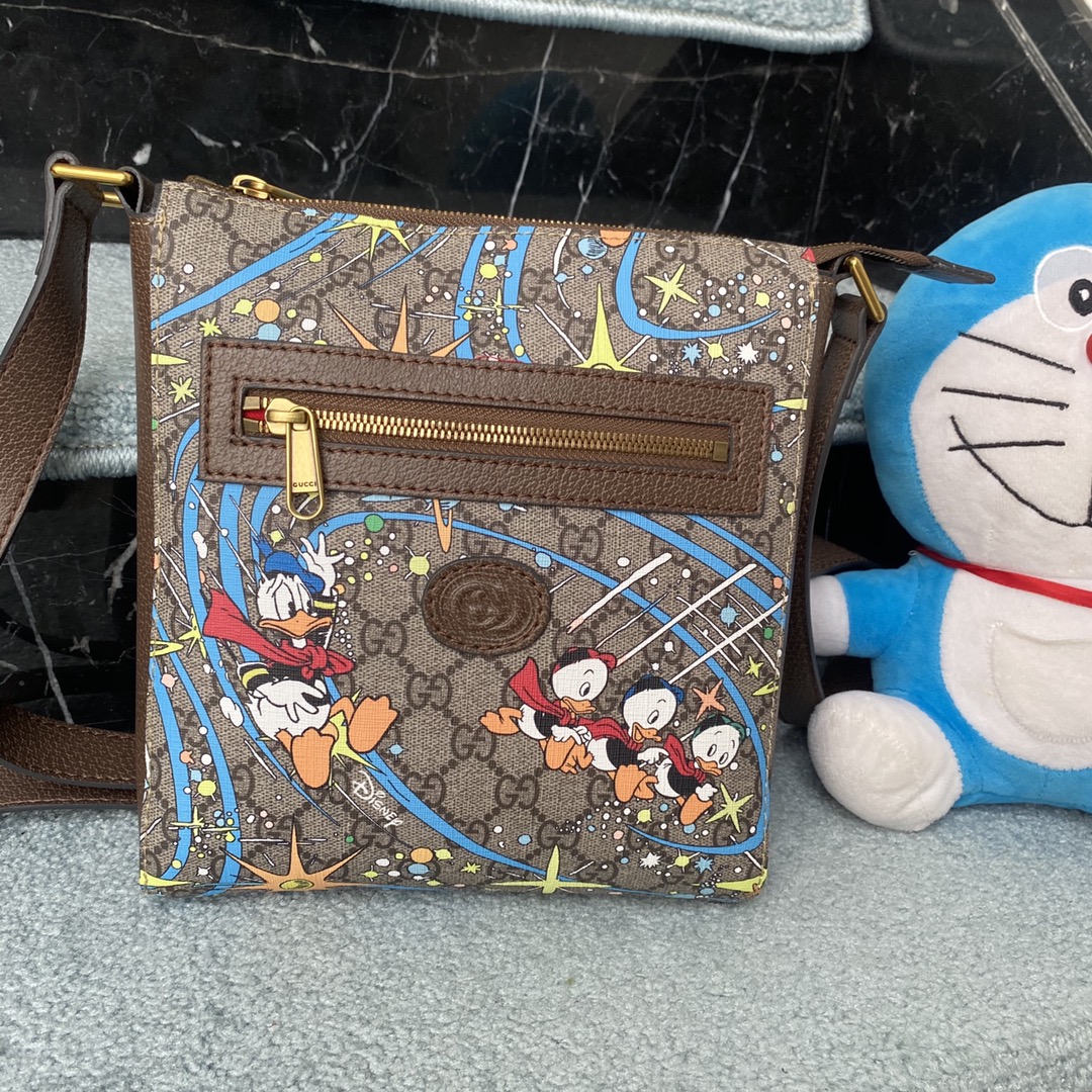 Style No.: 645054 Donald Duck Size: . .4 Hot-selling men’s crossbody bag, highly recommended for export! Classic color blocking, adjustable shoulder strap, and unique graffiti PVC.
