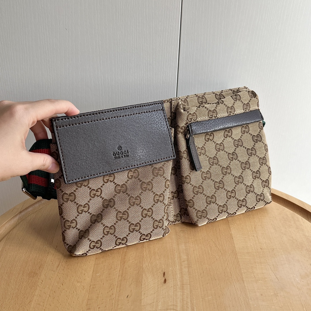 Model: 28566 Size: × ×2 G Classic Canvas Waist Bag. A bold new addition to the autumn/winter men’s wardrobe! A high-class essential! A must-have in the fashion world, and a top choice for travel. Enjoy unbeatable value! Made with G canvas and genuine leather, this men’s waist bag is identical to those in boutiques. Multiple compartments available.