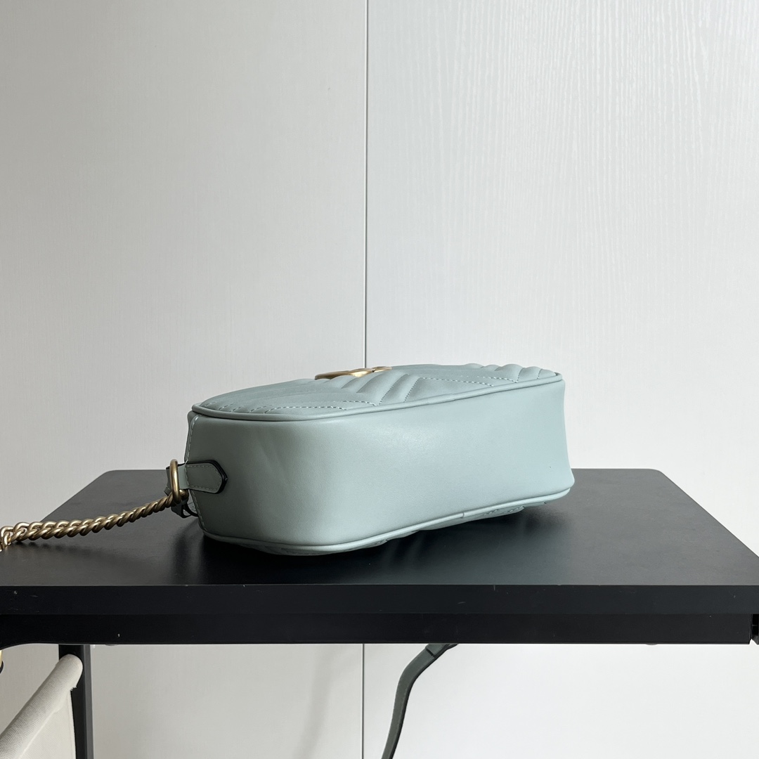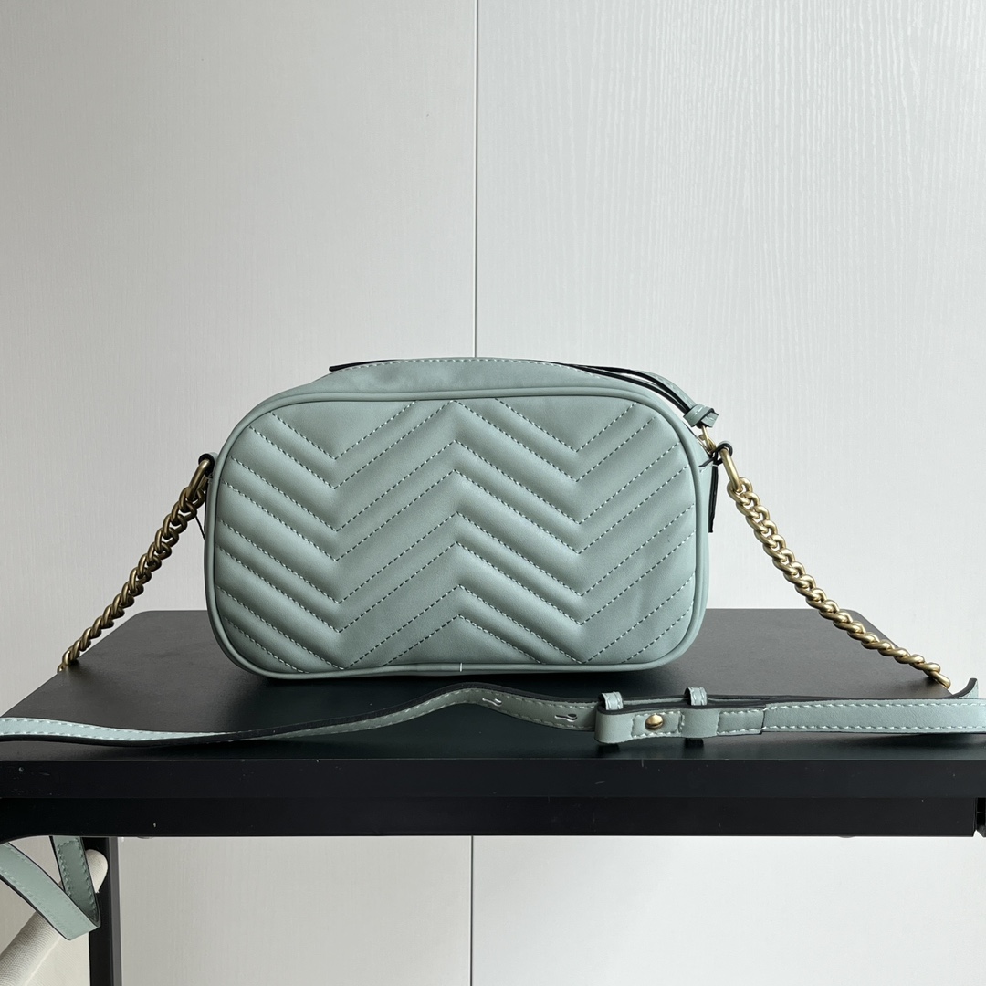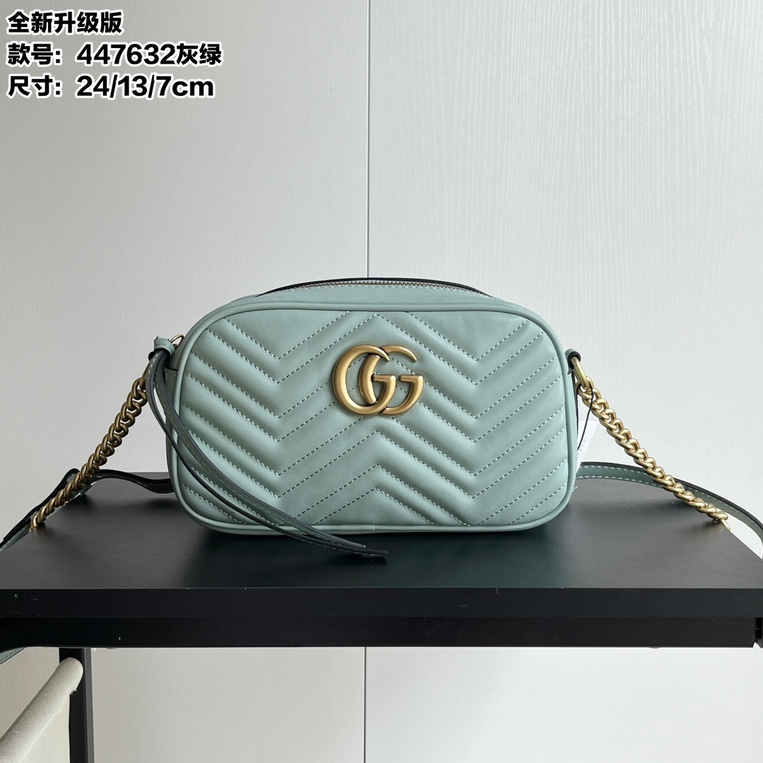 Model: 447632 Gray-Green Size: * *7 Cowhide GG Marmont new disco bag Another hot item on Instagram, frequently seen in street style photos by influencers and fashionistas. Simple, stylish, and high-quality design, making it a must-have item.