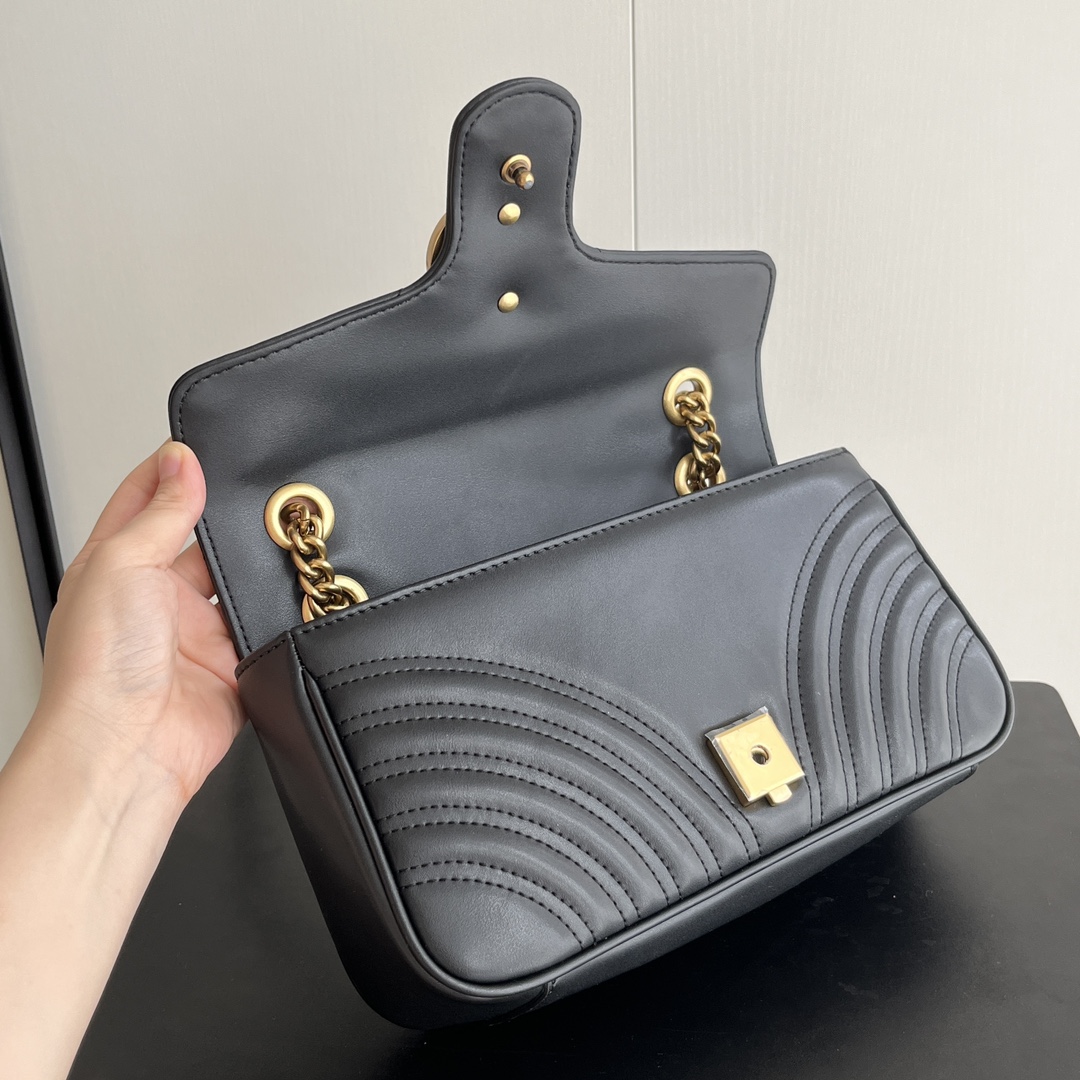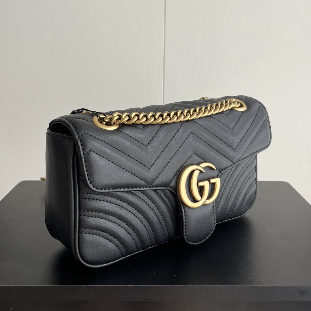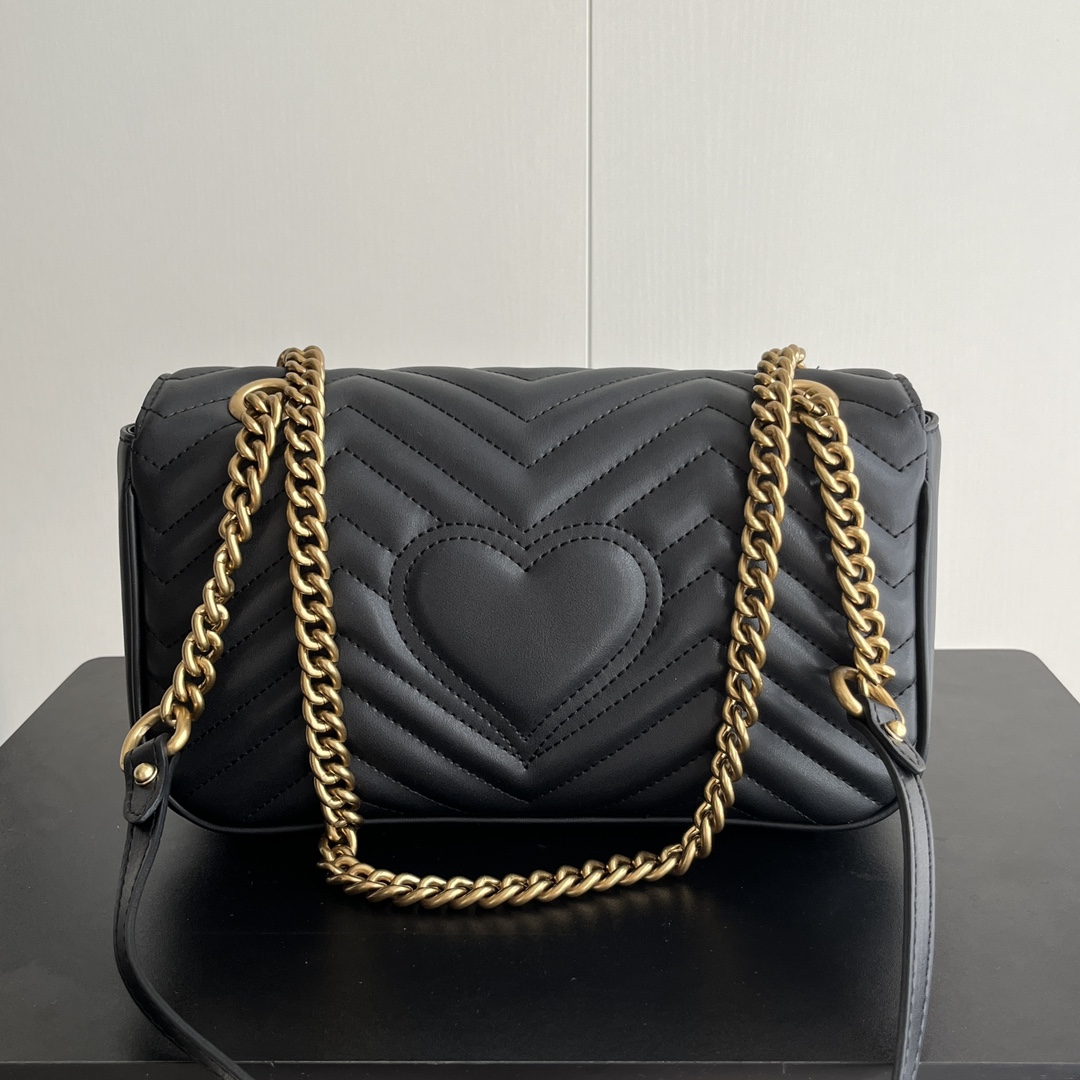 Style No.: 443497 Black Size: -7-15cm GG Marmont Medium Classic design unchanged, hardware and lining, more for the same price Huge capacity: fits a power bank, makeup supplies, and a phone with room to spare Super versatile, two ways to wear it: crossbody for a casual look, or two chains folded over the shoulder for a more sophisticated style ‍⚖️